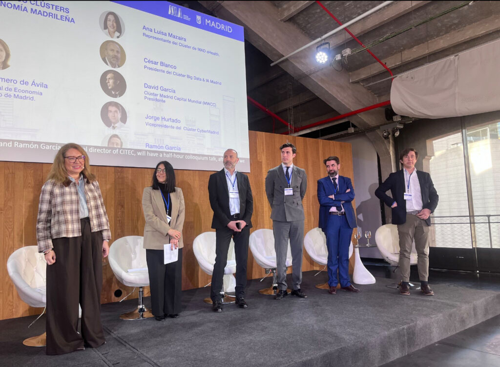 Durante la jornada, César Blanco García, presidente del Cluster, intervino en la mesa redonda «El papel de los clusters tecnológicos en la economía de Madrid», moderada por María Jesús Romero de Ávila Torrijos, Directora General de economía del Ayuntamiento de Madrid y donde se compartieron perspectivas sobre cómo los clusters tecnológicos están impulsando el crecimiento económico y la innovación en la ciudad. En este panel, también participaron los clusters MAD e-Health, CyberMadrid, MWCC y CITET.